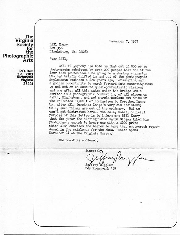forty seven years ago Ralph Gibson liked one of my pictureskind words.I was living near McCoy in a 10×32, Prices Fork Road. Had a darkroom and an Omega B-22 enlarger.