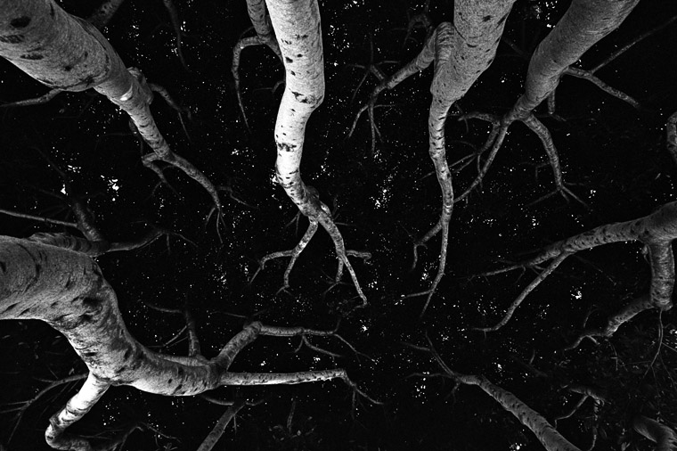 This is a badly underexposed photo looking up into the canopy of a tree. The pin points of light are the sky.I failed to "bracket"